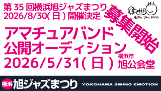 横浜旭ジャズまつり第35回記念特別企画「旭ジュニアバンド(仮称)」では、音楽が好きな小中学生・高校生メンバーを大募集します!吹奏楽部や軽音楽部、個人レッスンで演奏経験を積んできた人たちが集まり、ビッグバンドというチームで音楽をつくる特別なプ...